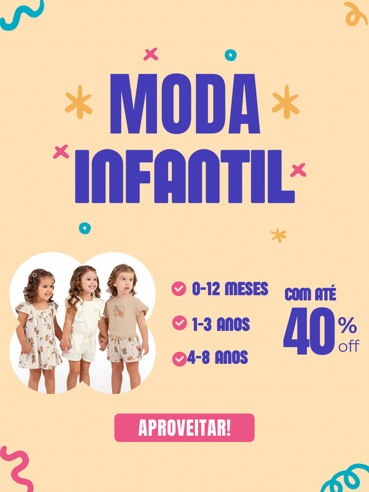 Descubra um mundo onde conforto, estilo e criatividade se encontram para vestir seus pequenos com as melhores peças do mercado. Nossa coleção foi cuidadosamente selecionada para garantir que cada criança se sinta única, alegre e pronta para explorar o mundo.