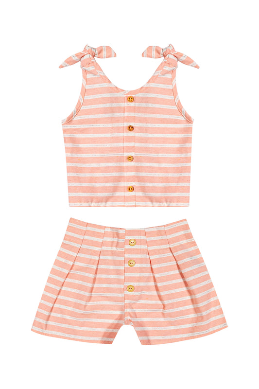 Conjunto Infantil Listrado Botões Rosa