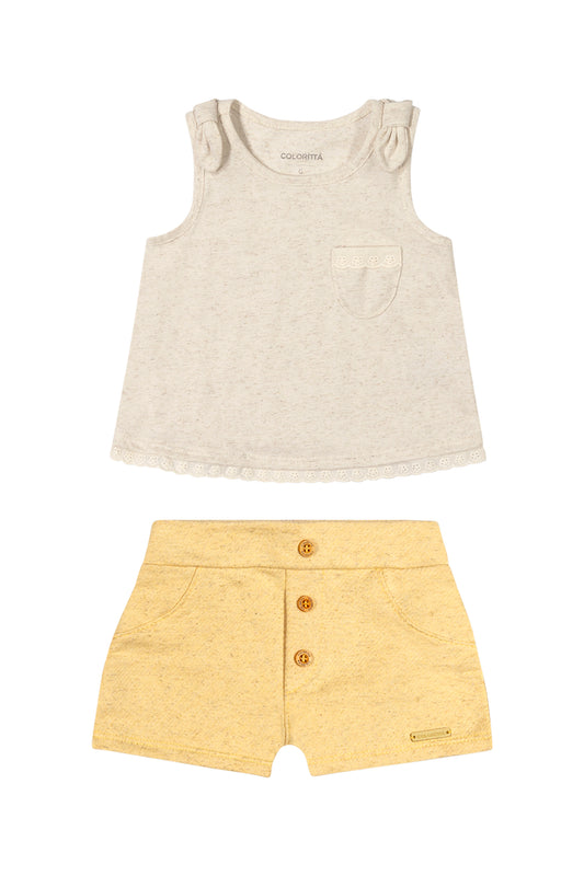 Conjunto Infantil Malha Texturizada Amarelo