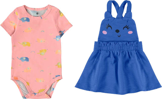 Conjunto Infantil Menina Salopete Em Malha Texturizada Gatinha