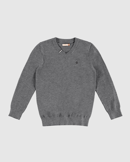 Suéter Menino Decote V Com Bordado Em Tricô