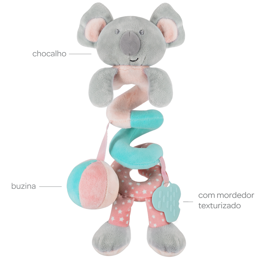 O Bichinho Mola Coala Azul da Buba é ideal para entreter e desenvolver os sentidos do bebê. Macio com mordedores, som de chocalho e tons suaves, estimula o tato, a audição e a visão dos pequenos.