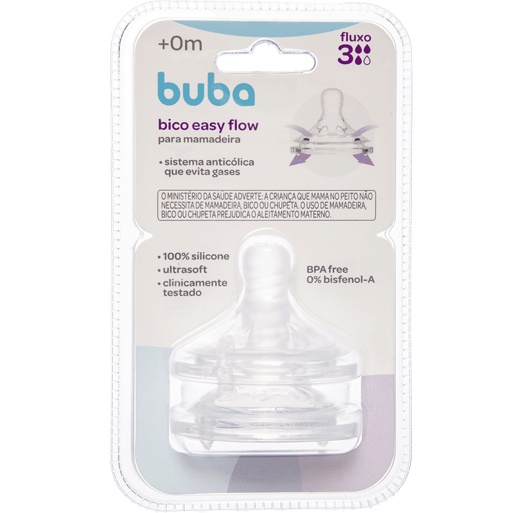 O Bico para Mamadeira Easy Flow Anticólica da Buba conta com um sistema de duas válvulas que evita a formação de gases e cólica, causada pela ingestão de ar. Produzido em silicone ultrasoft, supermacio e com textura sedosa, que se assemelha ao bico do seio da mãe. Para acompanhar o crescimento do bebê, os bicos estão disponíveis em 4 fluxos diferentes.