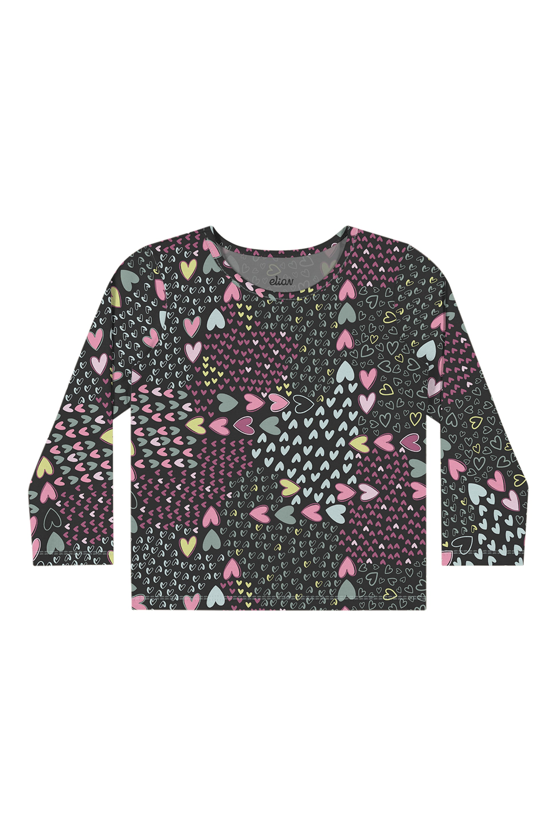 Blusa Infantil Menina Manga Longa Estampa Corações Preta