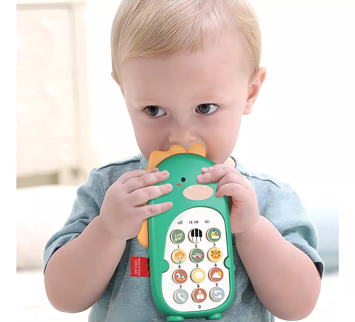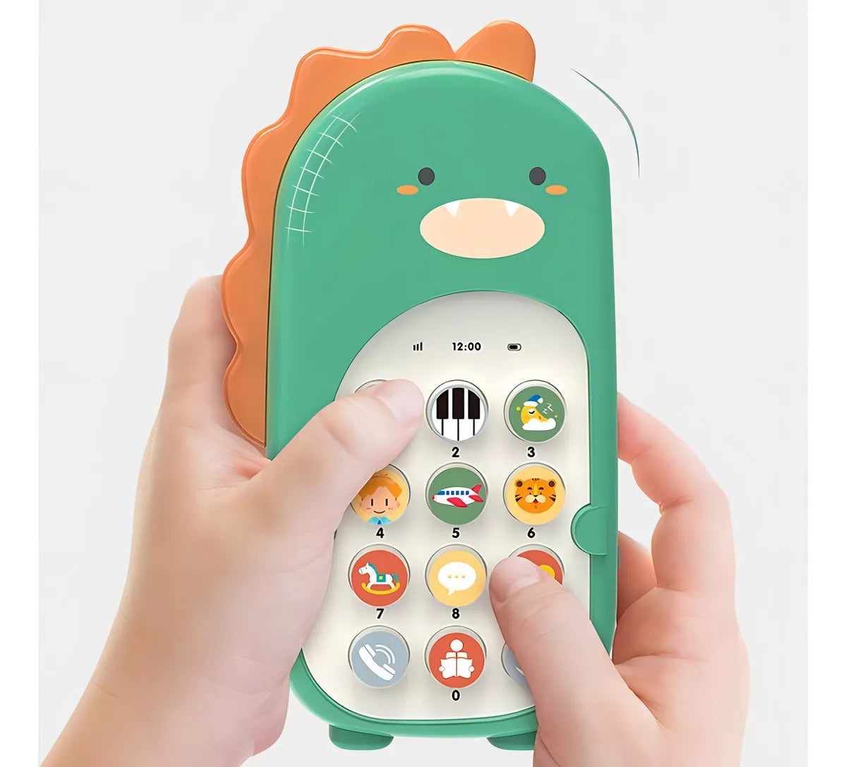 O Celular Musical Dinossauro verde da Buba possui 13 botões interativos, vibra com o som e tem mais de 50 músicas e sons, é um brinquedo que auxilia no desenvolvimento auditivo e cognitivo, além da percepção visual e tátil, trazendo vastas possibilidades de sons e brincadeiras. O celular musical Pimpolho tem sons e formato de dinossauro. Para um brincar muito mais divertido. Alimentação: 3 pilhas AAA (não inclusas).