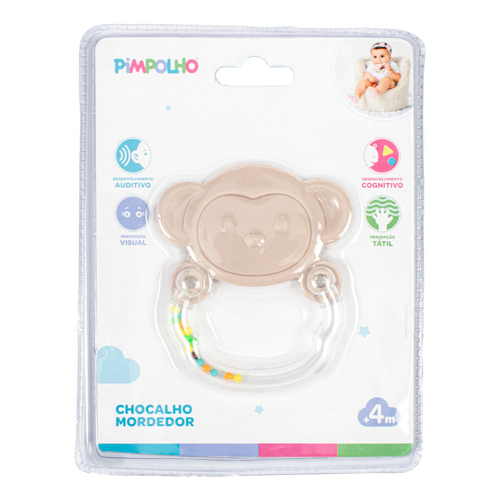 O Chocalho Mordedor Pimpolho é macio, molinho, seguro, e alivia os desconfortos causados pelo nascimento dos primeiros dentinhos. O formato de bichinho e cores vibrantes atraem a atenção do bebê e sua alça tem bolinhas que se movimentam e geram sons ao chacoalhar.