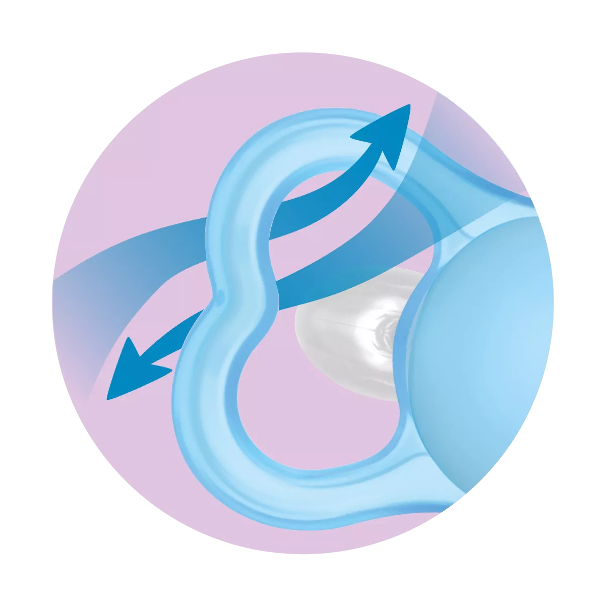- Minimiza o risco de desalinhamento dos dentes em relação a uma chupeta convencional
