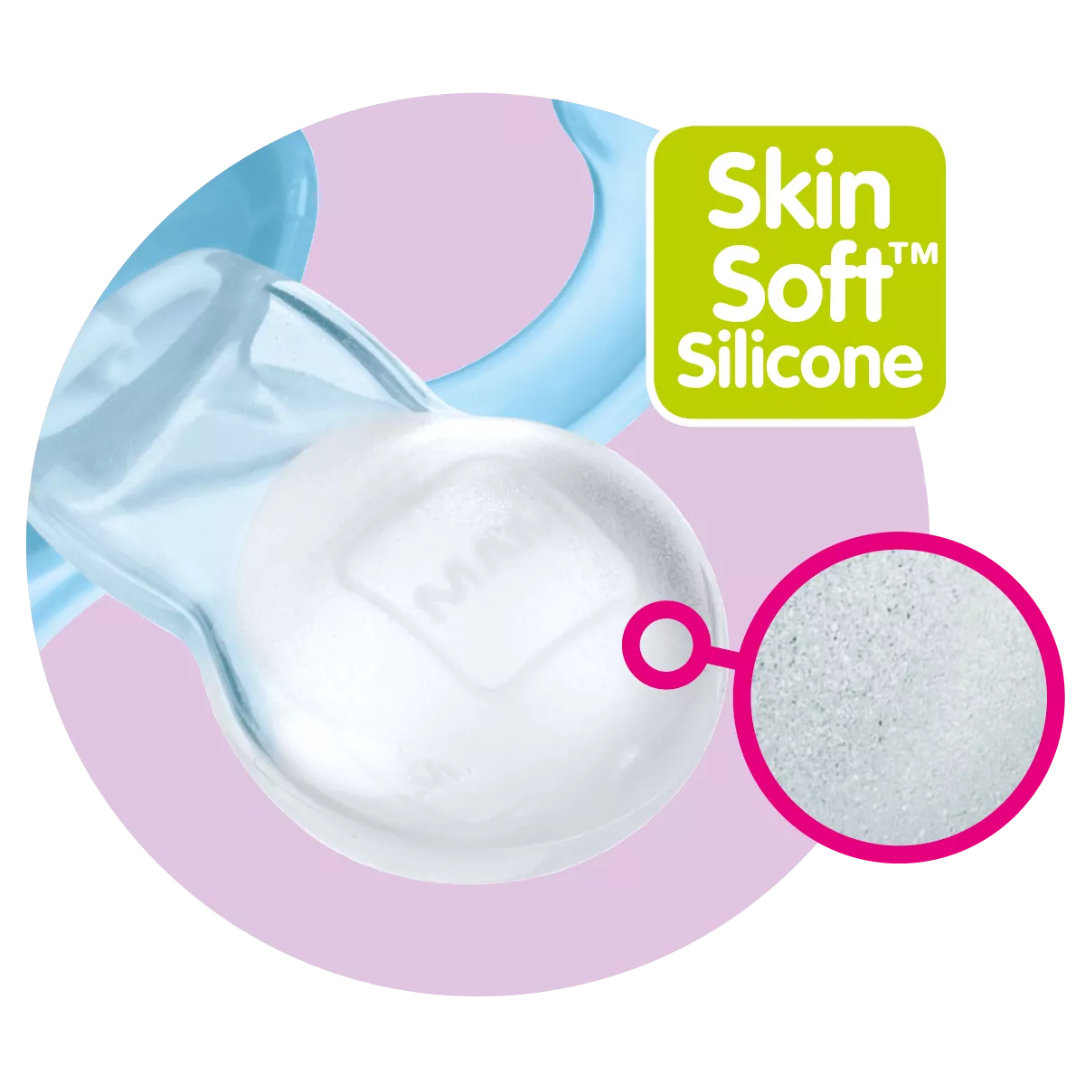 Inovação da MAM: macio com superfície texturizada e sedosa. Comprovadamente aceita por 94% das crianças*.