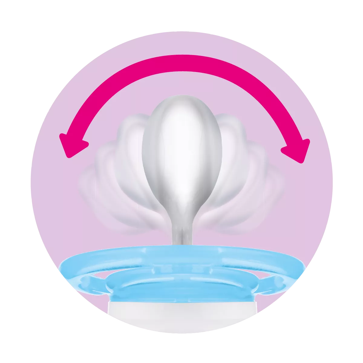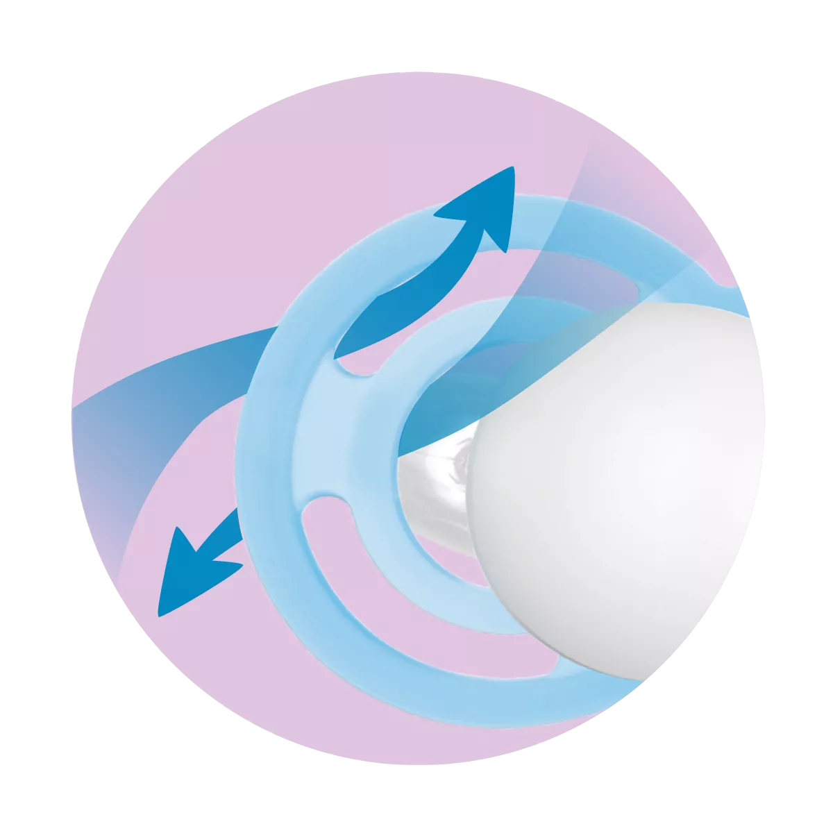 O formato extrafino da base do bico da MAM Supreme permite o fechamento natural da boca. Isso minimiza o risco de desalinhamento dos dentes em relação a uma chupeta convencional.