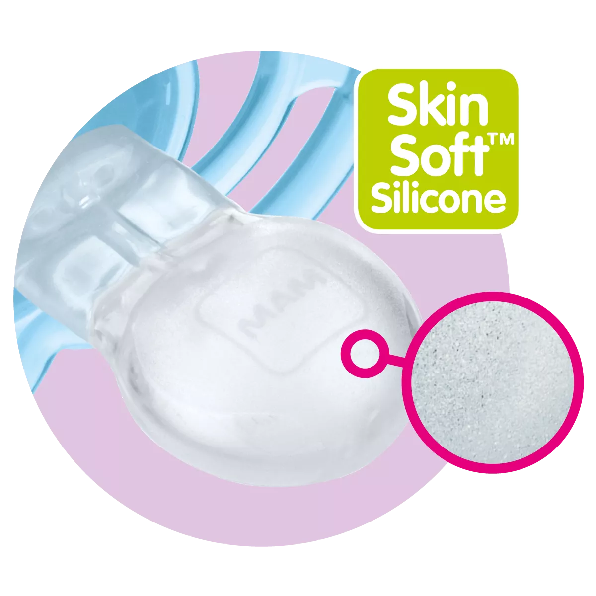 Inovação da MAM: macio com superfície texturizada e sedosa. Comprovadamente aceita por 94% das crianças*.