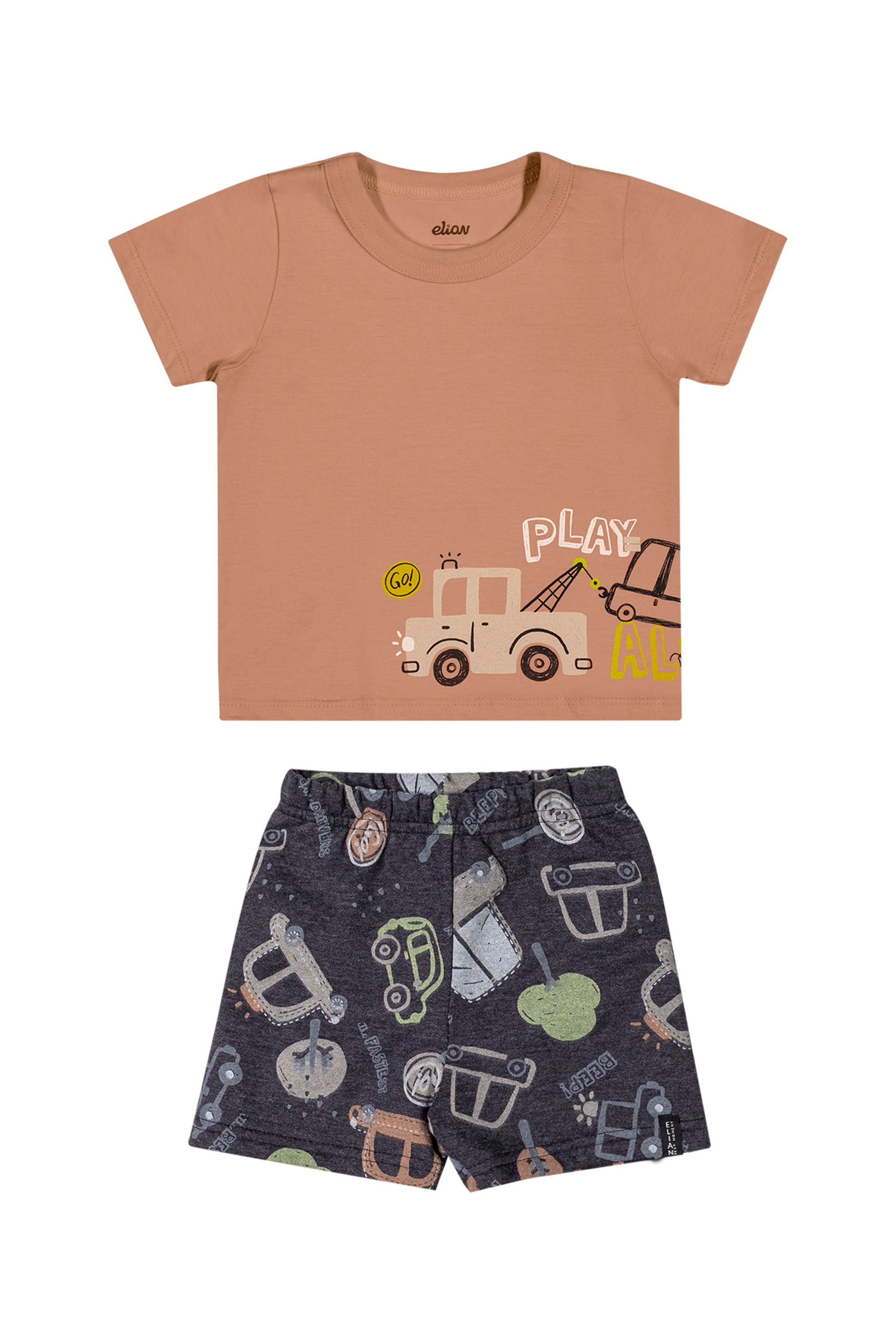 Conjunto Infantil Go Play Carros – Estilo e conforto para os pequenos que adoram aventuras! Composto por uma camiseta 100% algodão, na cor marrom, com divertida estampa ‘Go Play’ e carros, esse conjunto é perfeito para os dias de brincadeiras. A bermuda estampada de carros pela cidade, feita com uma mistura de 50% algodão e 50% poliéster, oferece resistência e liberdade de movimento. Ideal para meninos cheios de energia, esse look une diversão e conforto em um visual moderno e descolado!