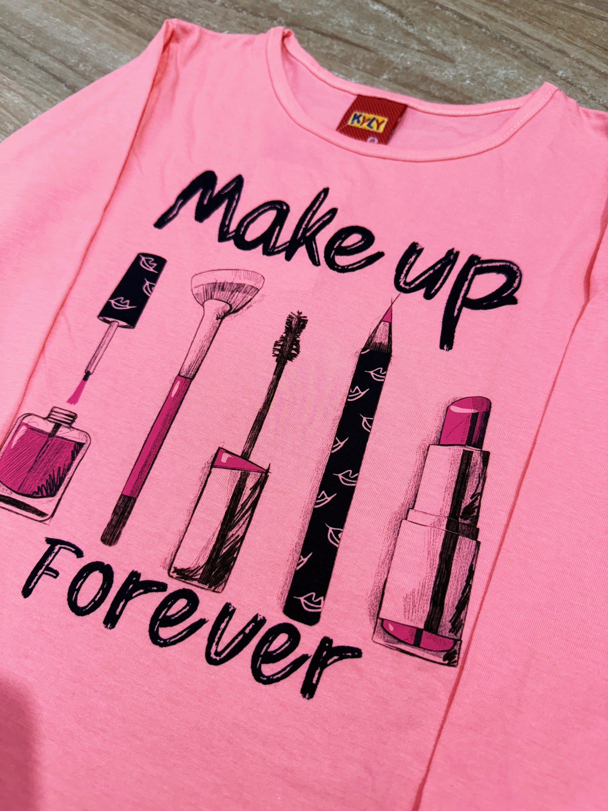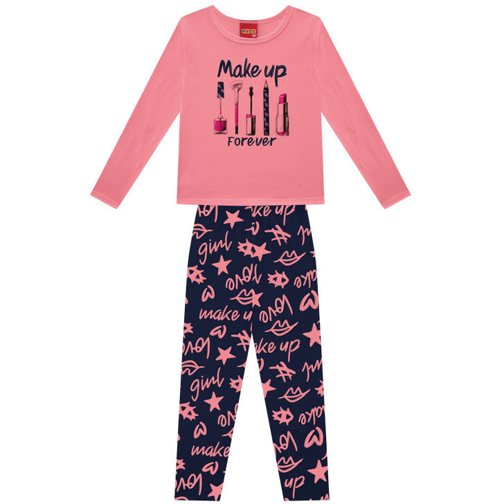 Cheio de personalidade e pensado para acompanhar as pequenas em todos os momentos, esse conjunto da Kyly combina conforto, estilo e diversão! A blusa em meia malha 100% algodão possui toque suave e excelente respirabilidade, ideal para os dias mais agitados das meninas. Já a legging em cotton é superconfortável e tem elasticidade na medida certa, garantindo liberdade nos movimentos e muito charme no visual. O destaque fica por conta da estampa divertida com tema de maquiagem e lettering, perfeita para looks criativos e modernos.