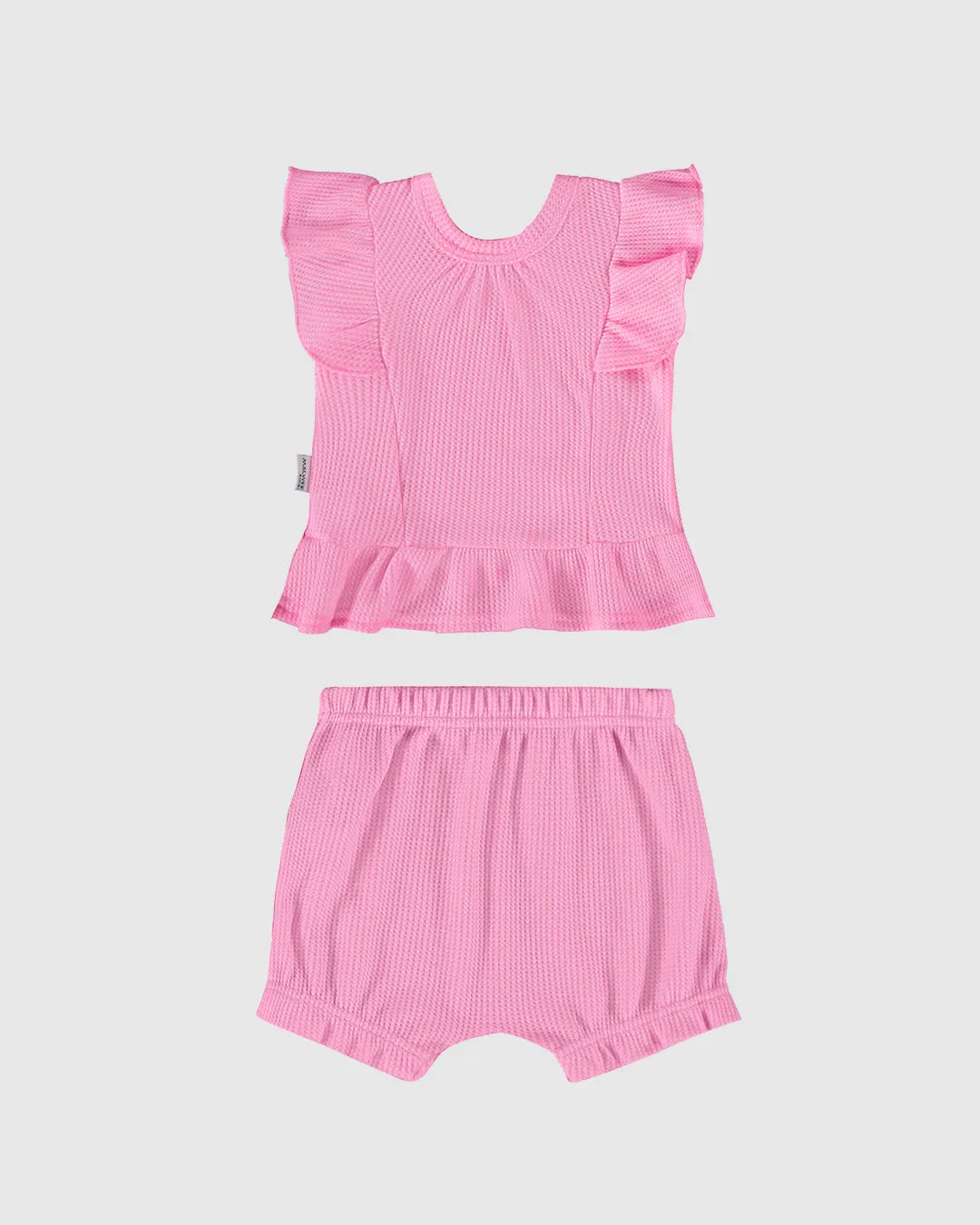 Conjunto Infantil Malha Texturizada com Babados Pink