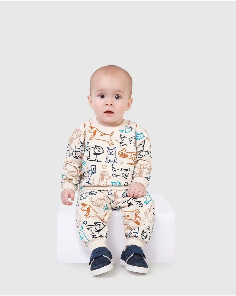 Conjunto Infantil Menino Estampa Cachorros Em Moletom Flanelado
