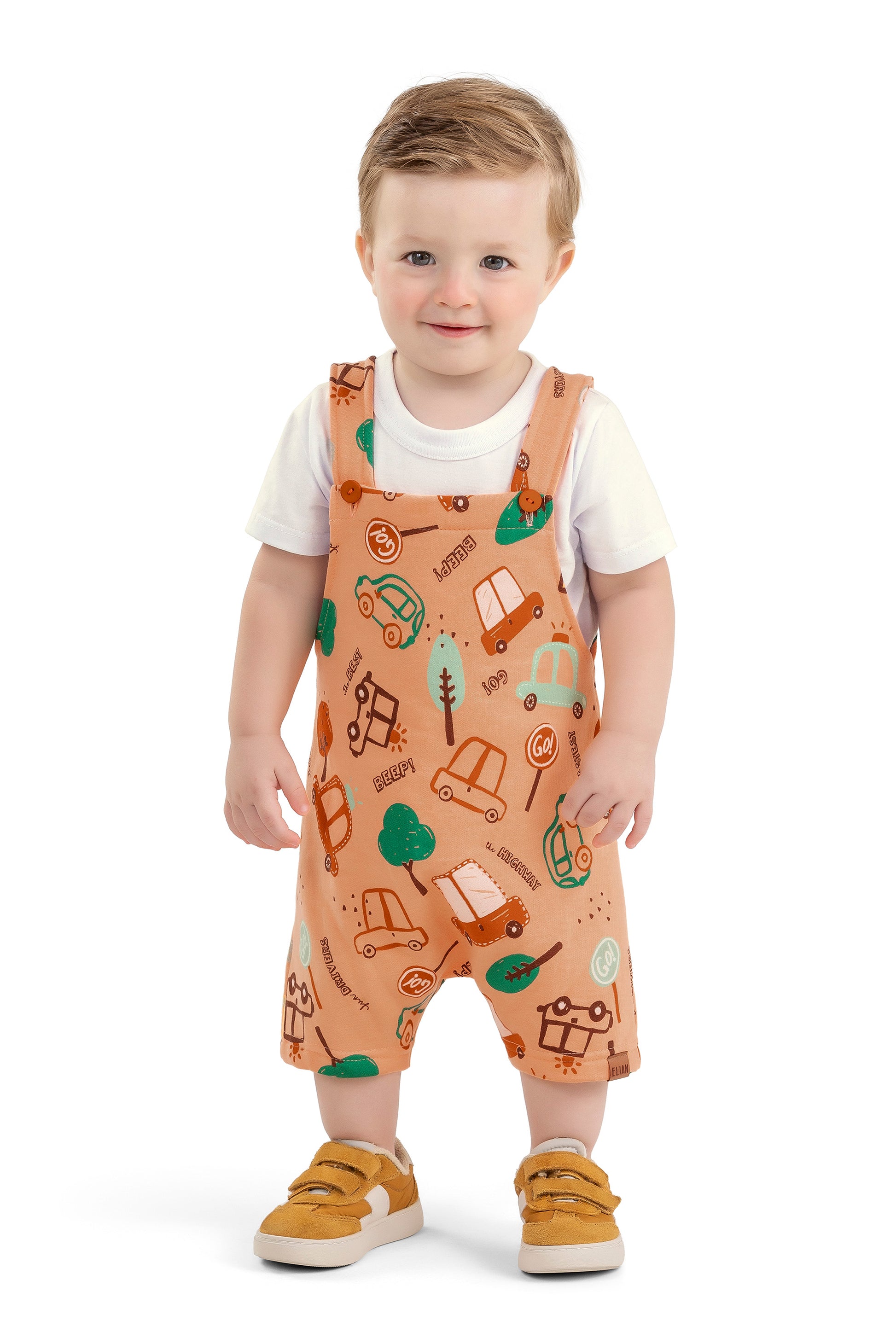 Conjunto Jardineira Infantil – A combinação perfeita de estilo e conforto para os pequenos! Composto por uma camiseta branca lisa 100% algodão, garantindo maciez e respirabilidade, e uma jardineira com divertida estampa de carros na cidade, feita de tecido resistente com 50% algodão e 50% poliéster. Ideal para dias de aventuras, este conjunto oferece liberdade de movimento e durabilidade, sem abrir mão do charme. Perfeito para explorar o mundo com criatividade e conforto!
