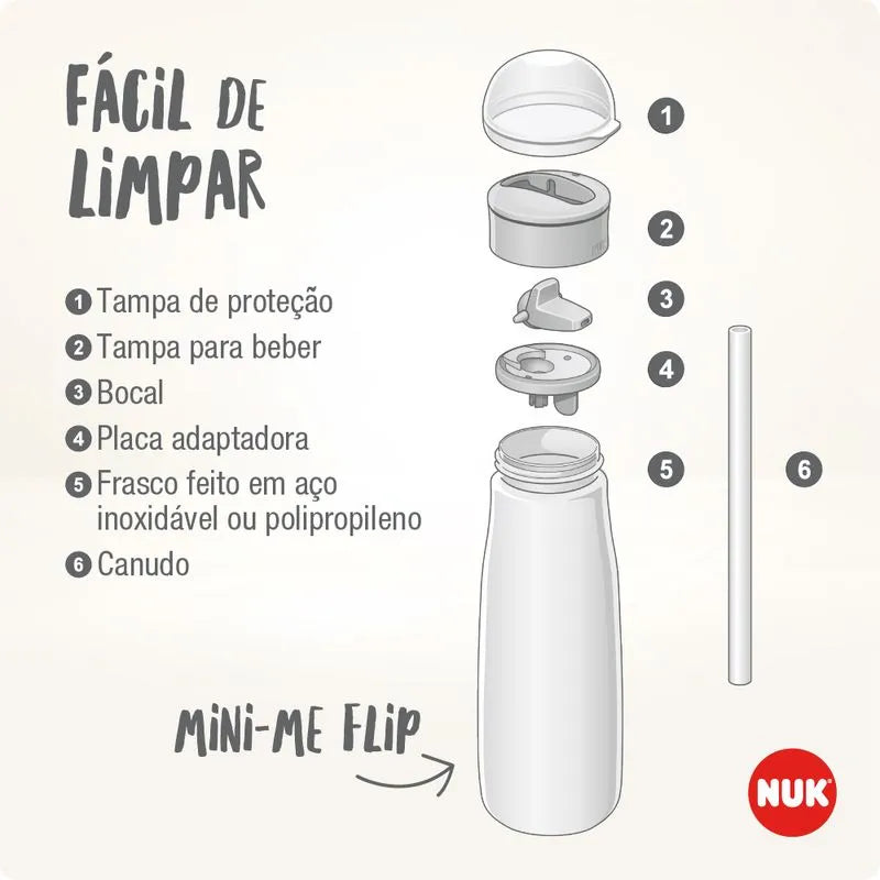 - Conteúdo da Embalagem: 1 Copo de Treinamento Infantil Mini-Me Flip Inox Nuk