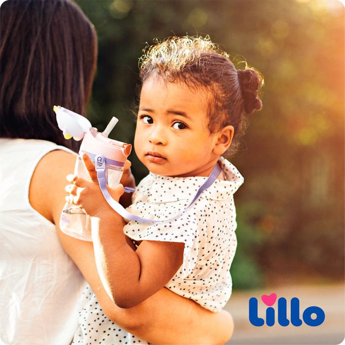 O copo possui alça ajustável e removível, é versátil e permite aos pais personalizá-lo de acordo com a necessidade. Produzido em material resistente, o frasco feito de tritan é transparente igual ao vidro. Livre de Bisfenol-A.
