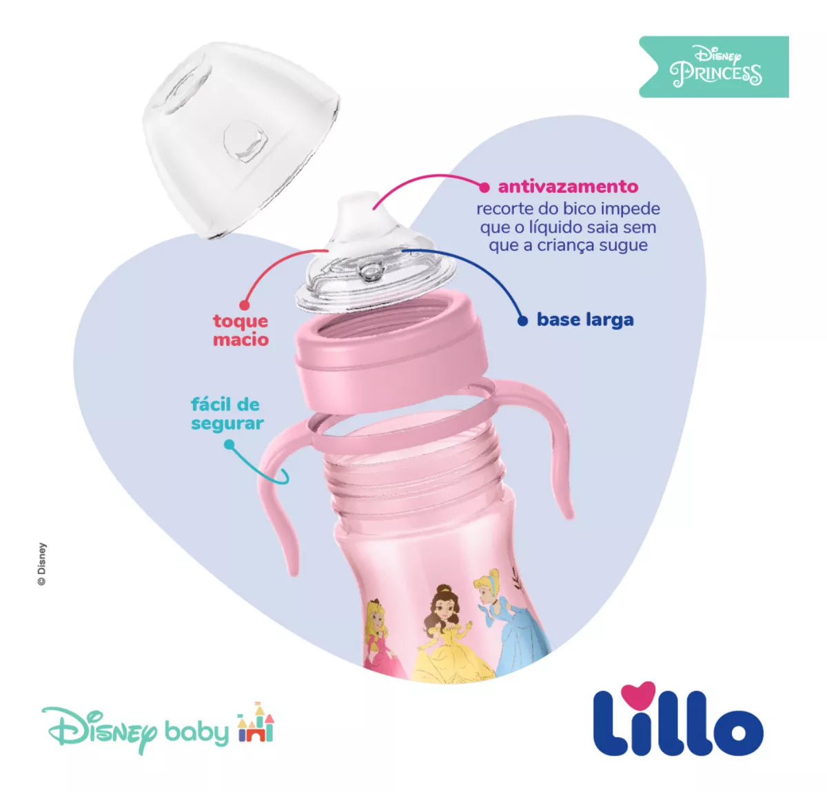 -Design atrativo: A estampa das Princesas Disney torna a hora da bebida mais divertida.