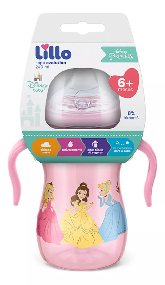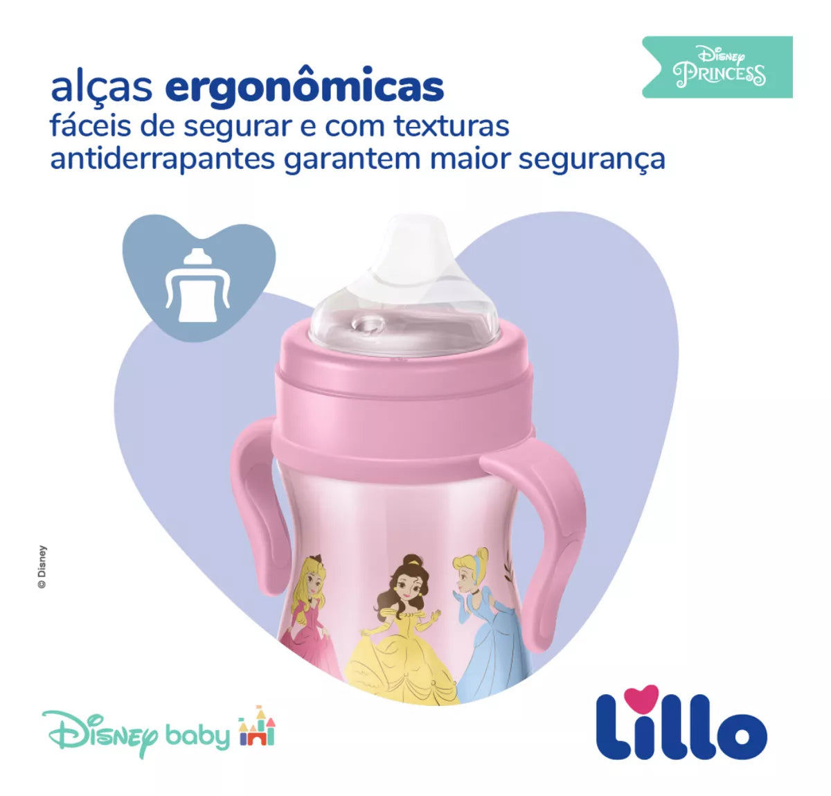 O Copo Evolution com Alças 240mL Princesas Lillo é uma excelente opção para introduzir seu filho à bebida em copo de forma divertida e segura. Com design encantador e funcionalidades pensadas para as mãos pequenas, esse copo facilita a transição da mamadeira para o copo.