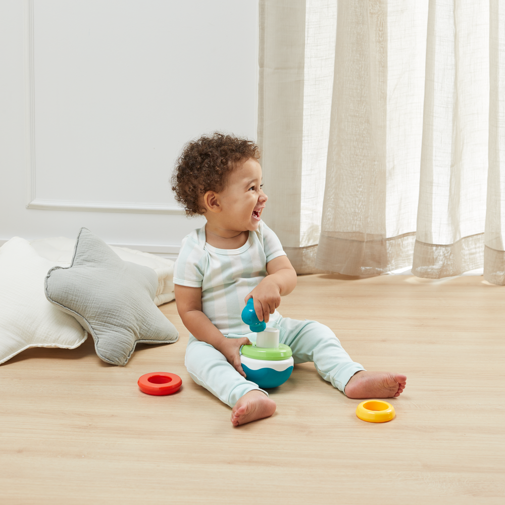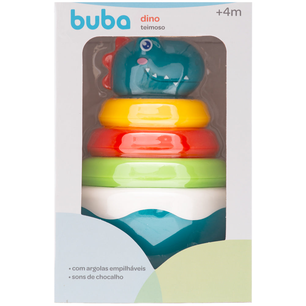Com argolas empilháveis e som de chocalho, as crianças vão se divertir montando e desmontando o Dino Teimoso da Buba. Sua base é arredondada, deixando o brinquedo sempre em movimento, sem cair. Para se divertir, entreter e estimular os sentidos.