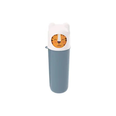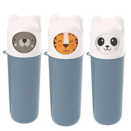O porta escova lúdico possui tampa com seus personagens preferidos fazendo caras e bocas. É só girar e os rostinhos mudam!