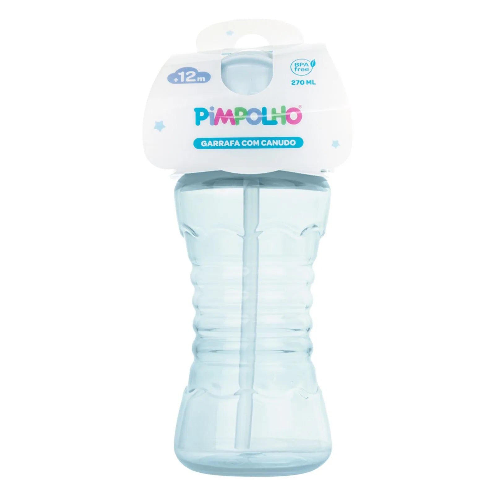 Garrafa com Canudo de Silicone 270 ml - Azul