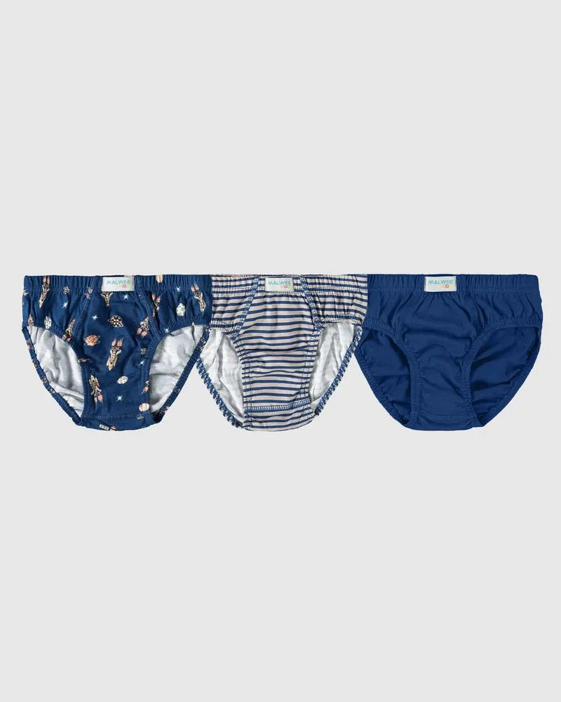 Kit 3 Cuecas Slip Infantis Azul Marinho