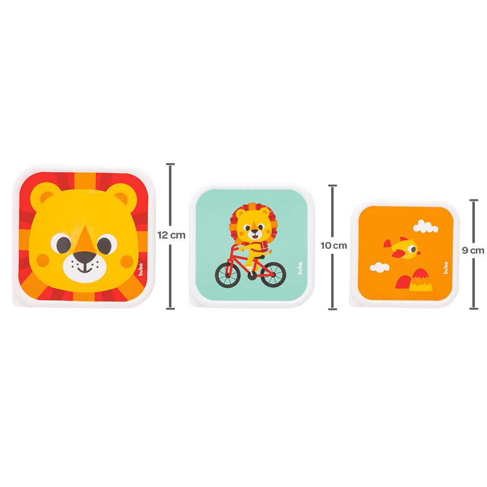 O Kit Potinhos Zoo da Buba é super prático! Possui 3 potimjos com tampa de tamanhos diferentes, ideais para armazenar e transportar os lanchinhos do pequeno!
