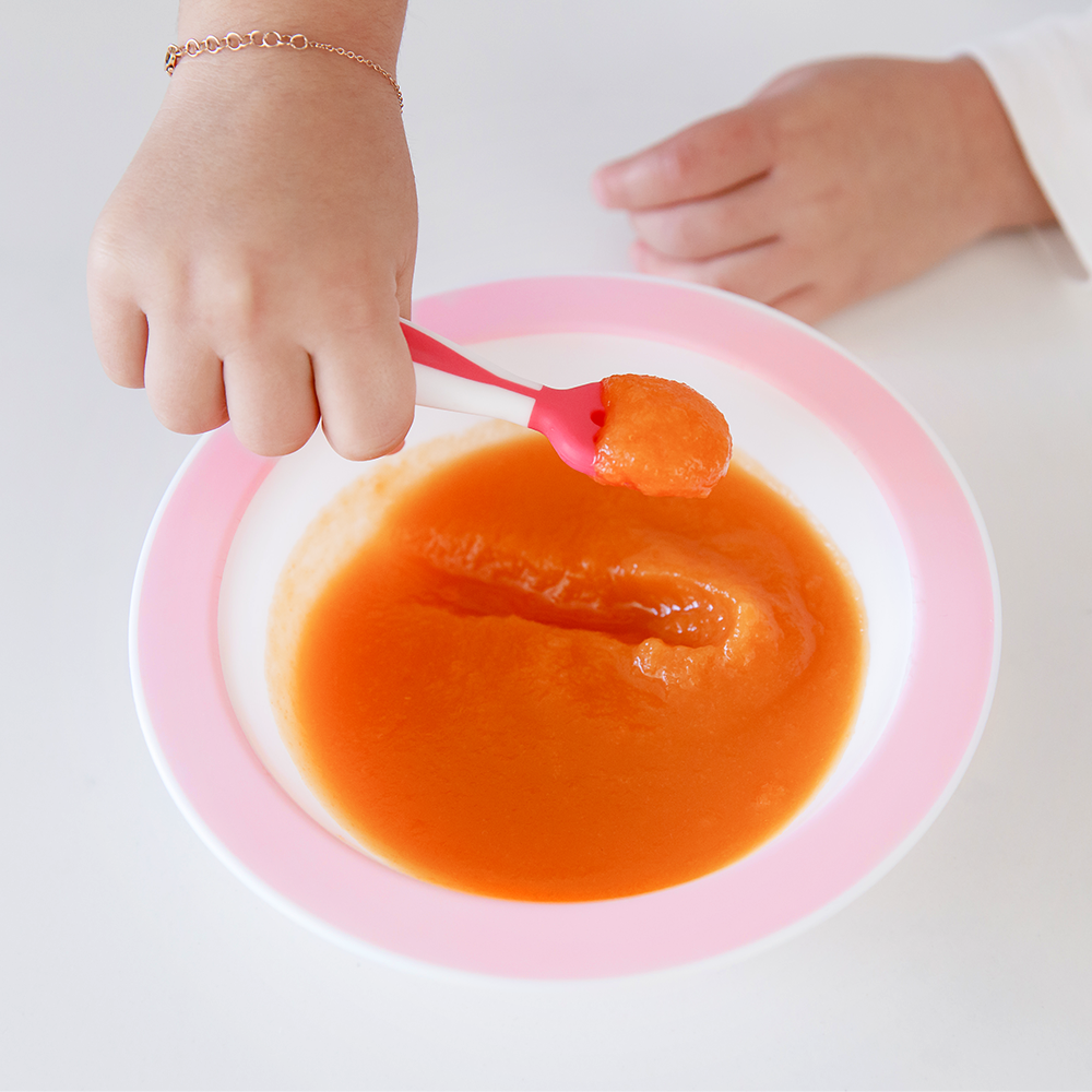 Estágio 1: Além de massagear a gengiva, essa colher é ideal para iniciar a autoalimentação com papinhas menos consistentes.