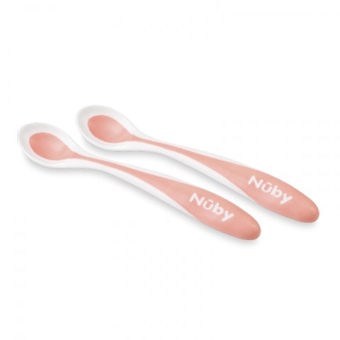 Ponta macia e suave. A ponta da colher fica branca quando o alimento está muito quente, evitando possíveis queimaduras no bebê