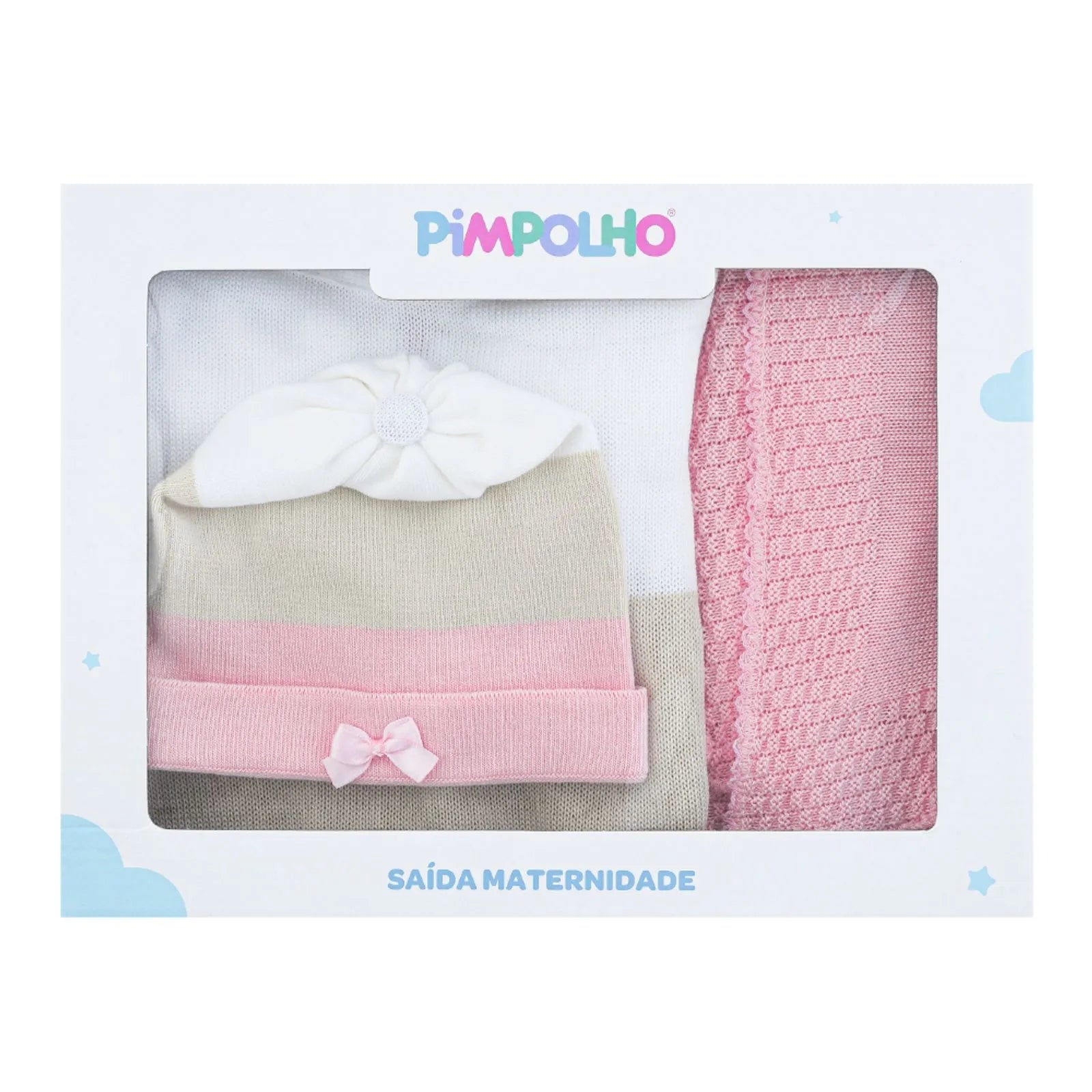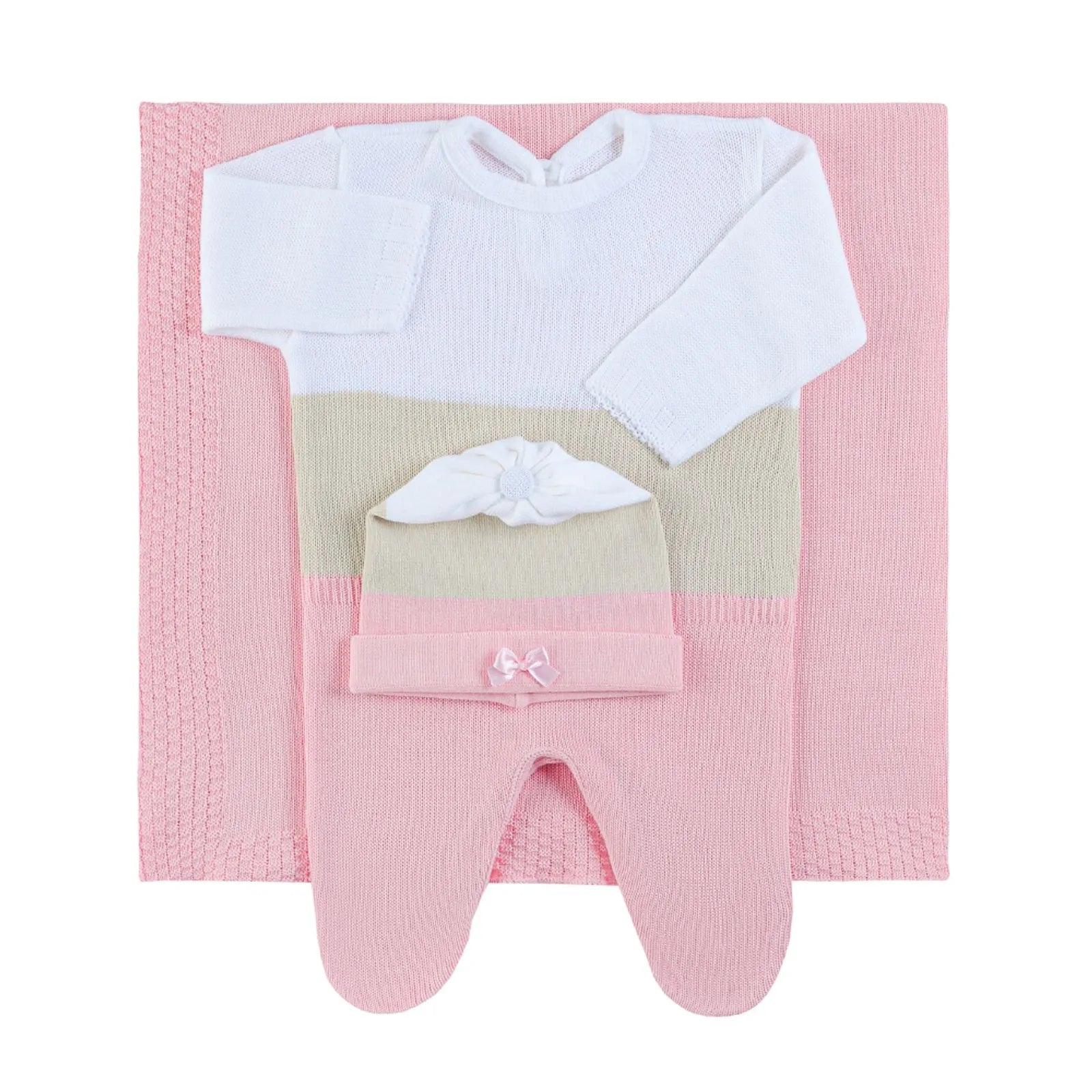 Kit Saída Maternidade Macacão, Gorro e Manta - Rosa e Branco