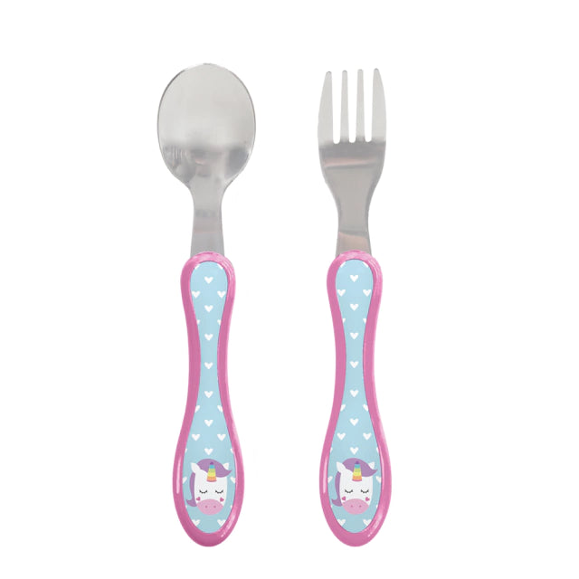 Material/Composição: Colher e Garfo: 100% Aço Inoxidável; Cabo 100% Polipropileno (PP). Livre de BPA e ftalatos.