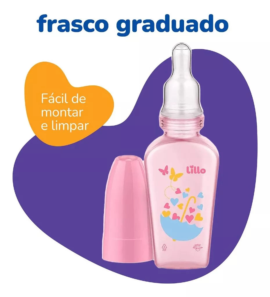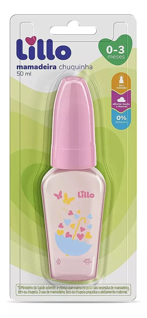 A Mamadeira Chuquinha Primeiros Passos da Lillo tem capacidade para até 50ml, seu bico redondo em silicone flexível possui um pequeno furo para que o fluxo dos líquidos seja lento proporcionando maior conforto durante a alimentação. Livre de BPA.