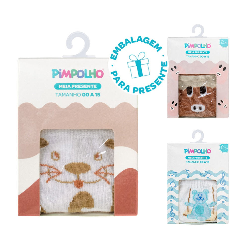 A Meia Presente com embalagem divertida cano médio é perfeita para presentear em momentos especiais. Super divertido ela alegra e encanta os pequenos. Produzido em algodão em sua maior parte é macio e de alta qualidade.