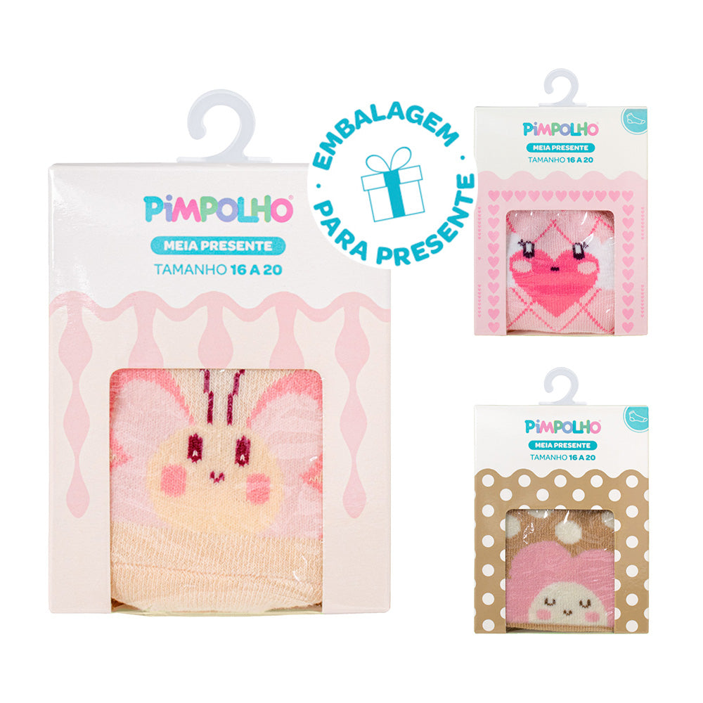 A Meia Presente com embalagem divertida cano médio é perfeita para presentear em momentos especiais. Super divertido ela alegra e encanta os pequenos. Produzido em algodão em sua maior parte é macio e de alta qualidade.