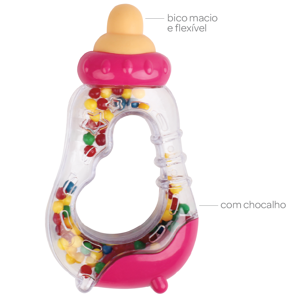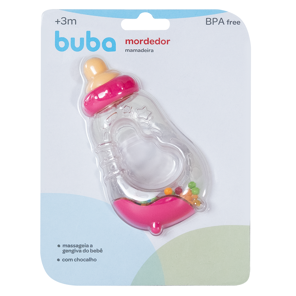 Os bebês vão amar o Mordedor Mamadeira da Buba! Com design vazado, foi desenvolvido especialmente para as mãozinhas pequenas segurarem. O bico macio é ideal para aliviar o desconforto causado pelo nascimento dos primeiros dentinhos. Além disso, possui som de chocalho perfeito para estimular a audição dos pequenos.