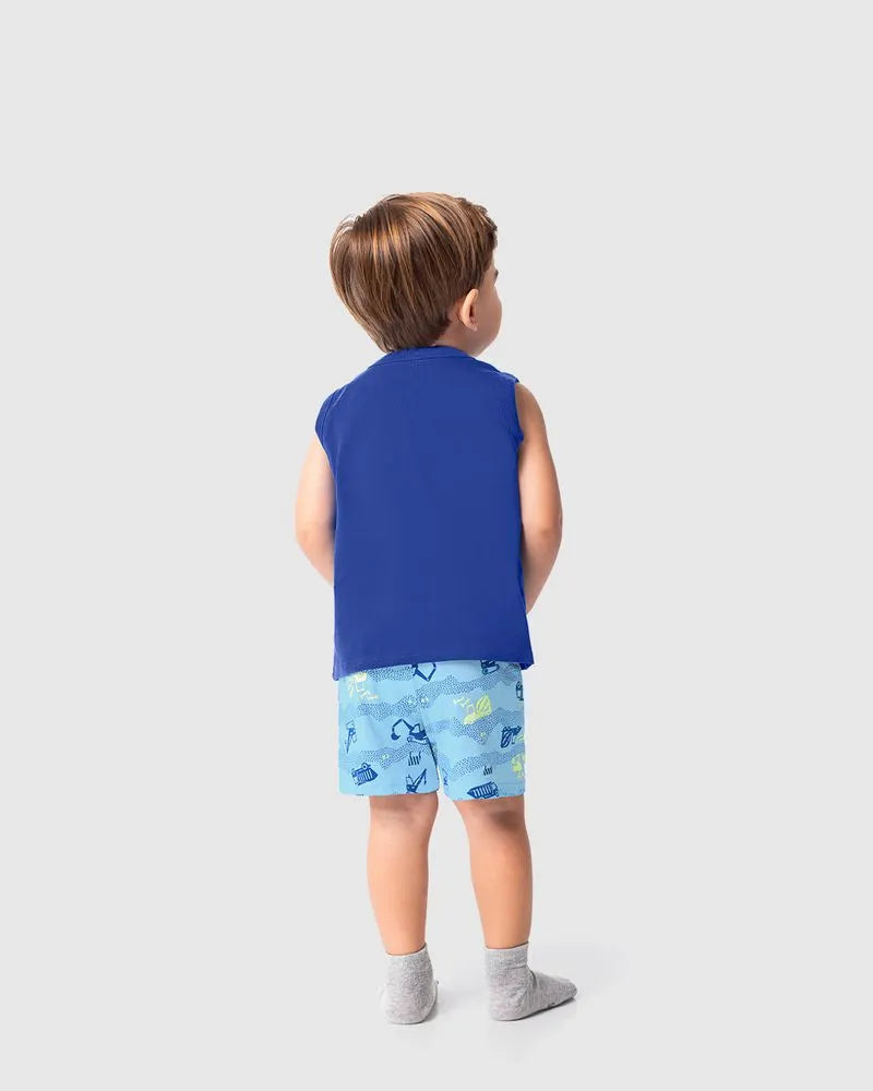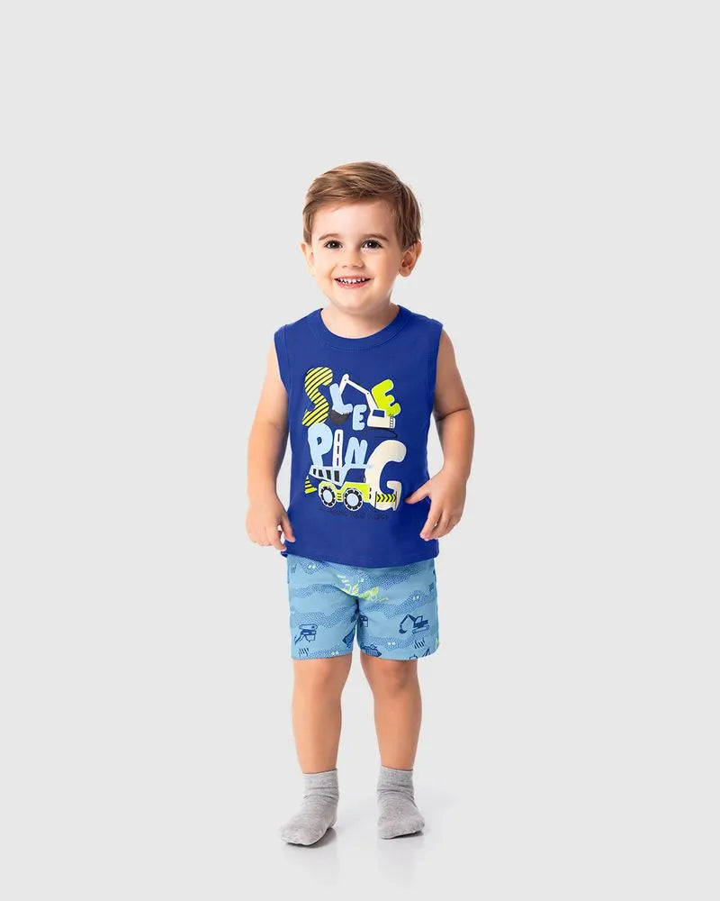 O Pijama Infantil Menino Sleeping Em Algodão Malwee Kids é o escolha ideal para noites de sono tranquilas. Confeccionado em algodão suave, inclui uma camiseta com uma divertida estampa "Sleeping" e shorts com cós elástico. Perfeito para noites frescas, o tecido respirável assegura conforto contínuo.