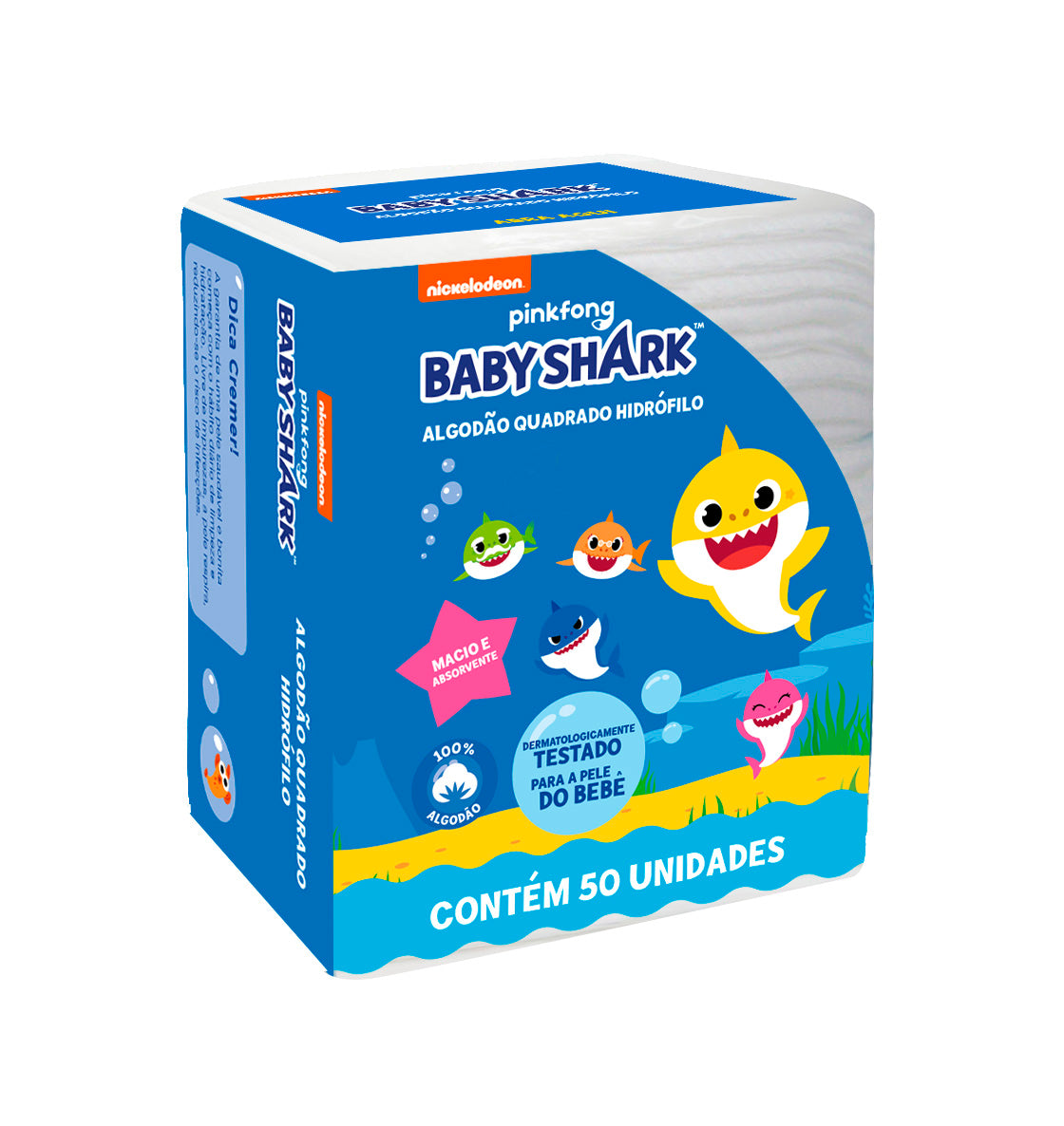 Quadrados de Algodão Baby Shark - 50 unidades