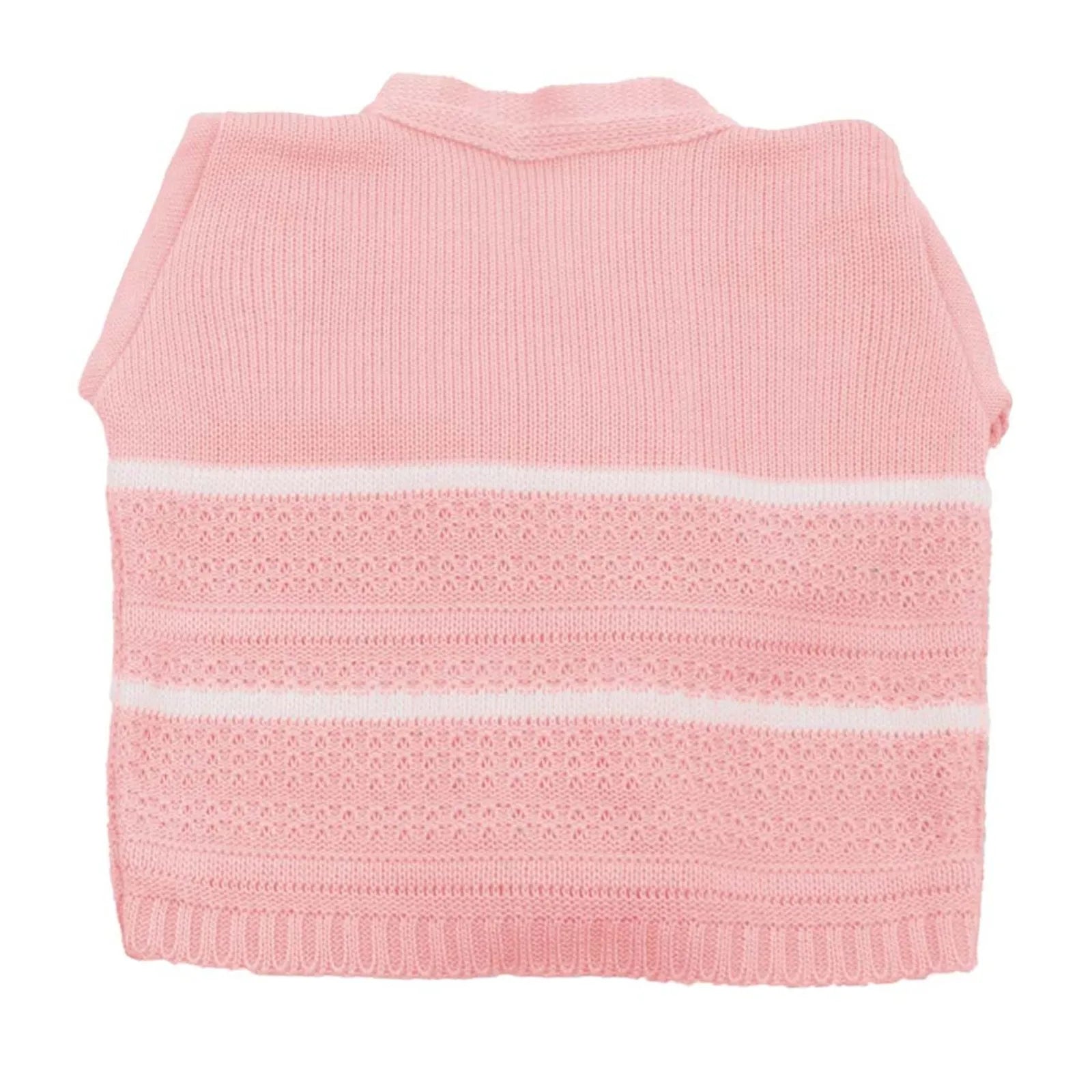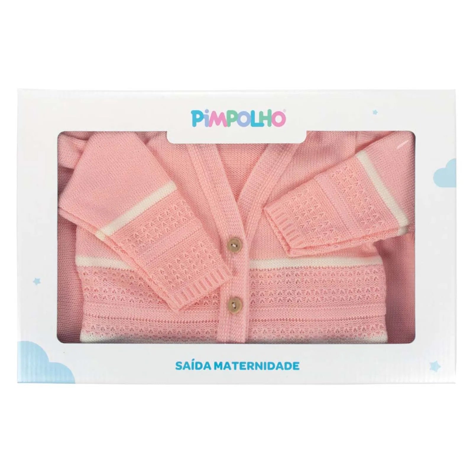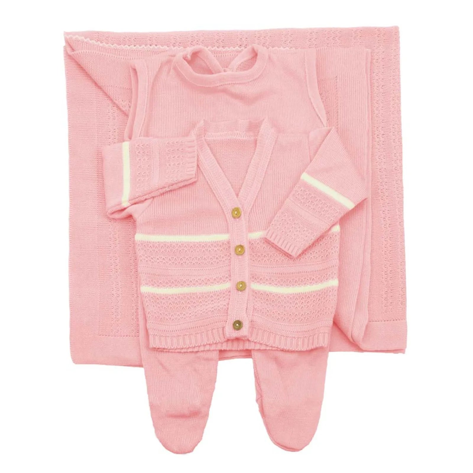 Kit Saída Maternidade Manta, Macacão e Casaco Jacquard - Rosa Listrado