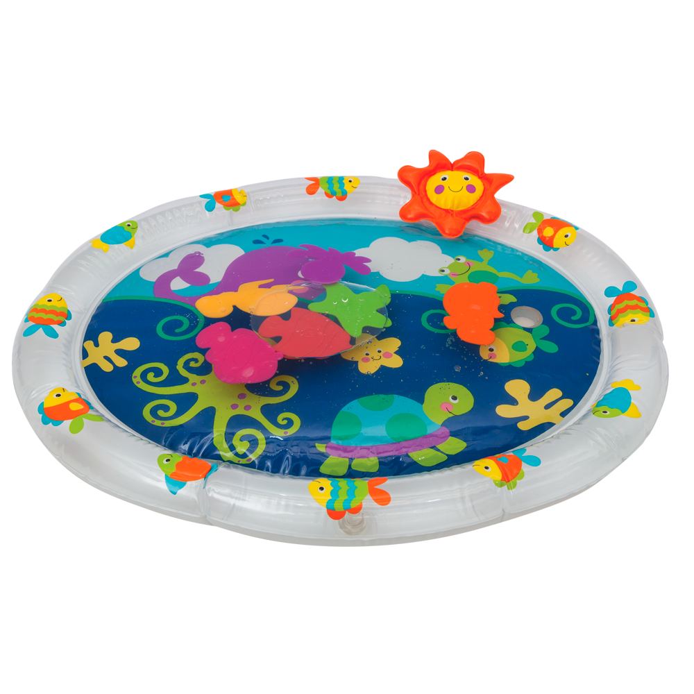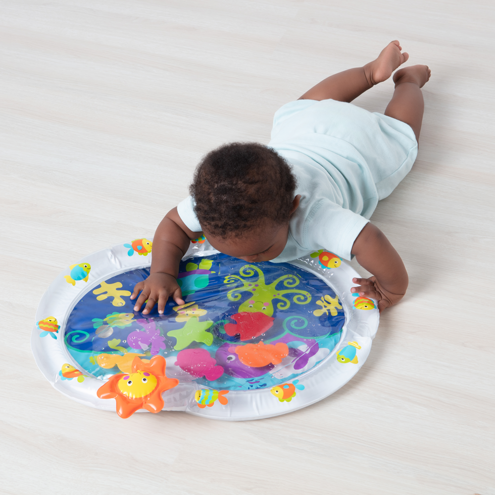 O Tapete de Água Inflável Mar da Buba é perfeito para o bebê brincar de bruços com conforto. Além de ajudar a fortalecer os músculos, possui elementos internos que se movimentam, ideais para estimular os sentidos do pequeno.