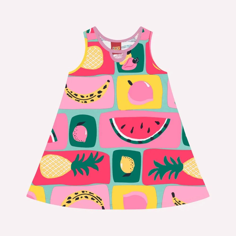 Vista sua pequena com a alegria das frutas e o frescor da meia malha no Vestido Infantil Menina Kyly!