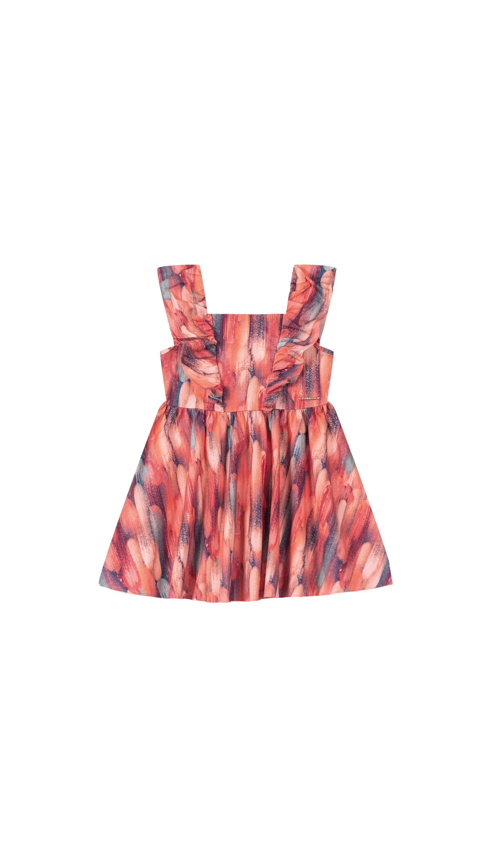 Vestido Infantil Carinhoso – Estilo e leveza para todas as ocasiões! Com uma linda estampa colorida minimalista, esse vestido encantador traz babados frontais delicados e uma modelagem levemente rodada, proporcionando um toque de movimento e graça. Feito com no mínimo 85% algodão, ele garante conforto e respirabilidade, ideal para os dias mais quentes. Perfeito para eventos especiais ou momentos de lazer, é uma peça versátil que une elegância e praticidade no dia a dia das meninas!